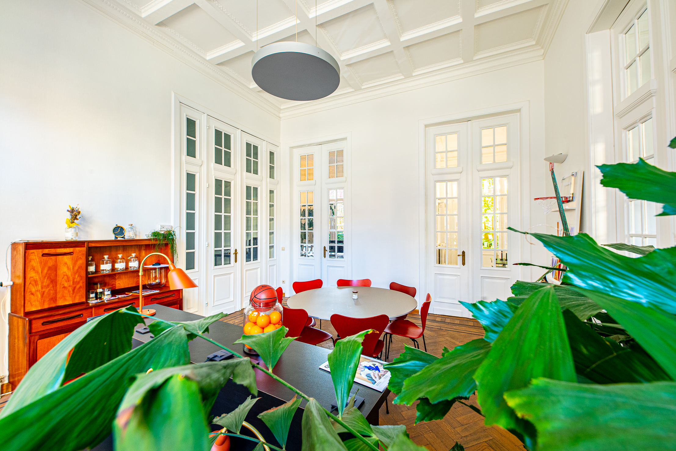 Het gebouw, evenals de tuinen, maken deel uit van een beschermd stadszicht. Het pand werd volledig gerenoveerd en onderverdeeld in 3 afzonderlijke kantoren. Vanaf 30 september 2023 komt het gelijkvloers kantoor vrij.